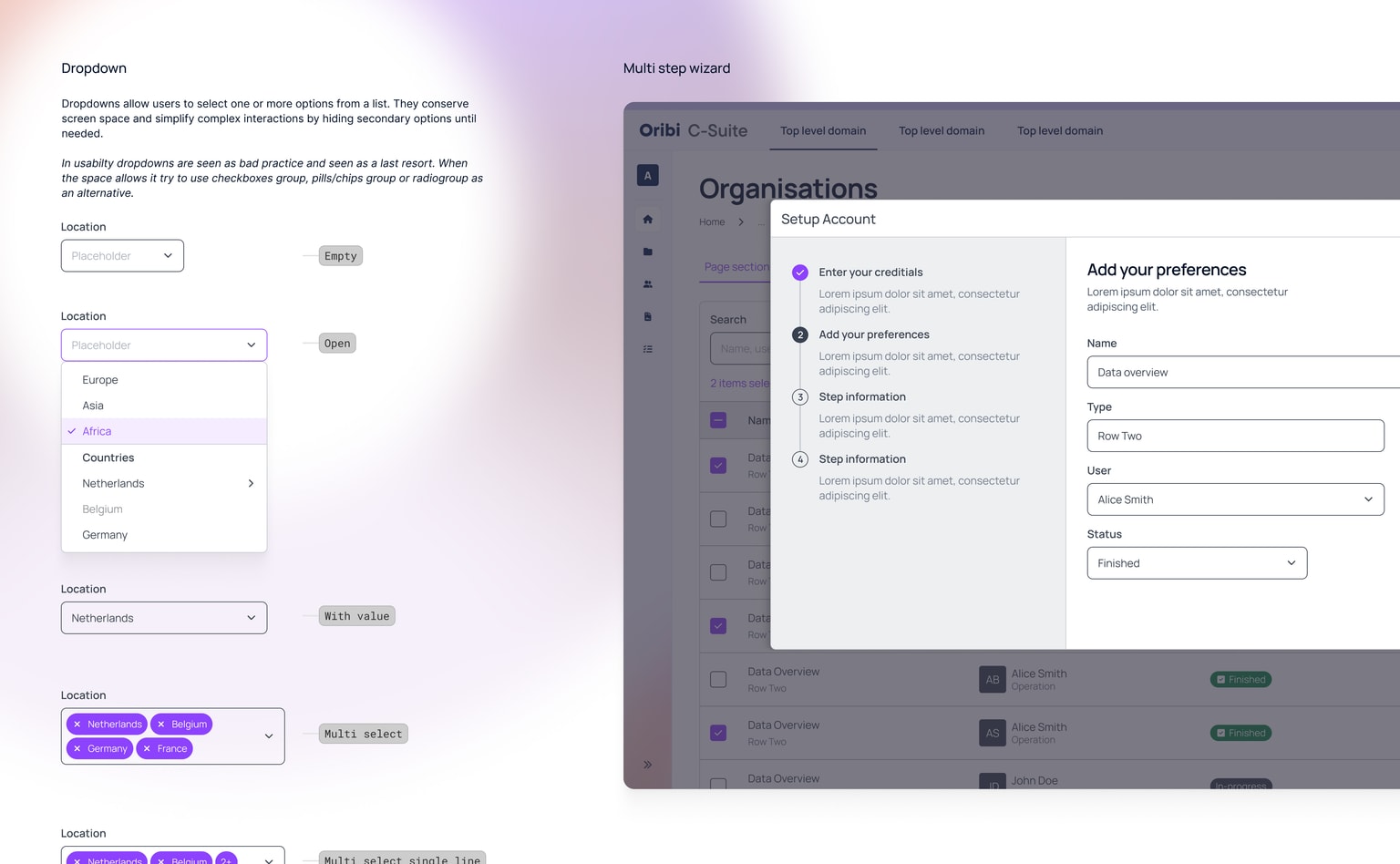 The main goal of the project was creating a design system which could be used across multiple different applications with different use cases. The design system had to be flexible and still feel familiar for the end users. The end result is a well documented design system with real world usage exmaples which is currently being applied.